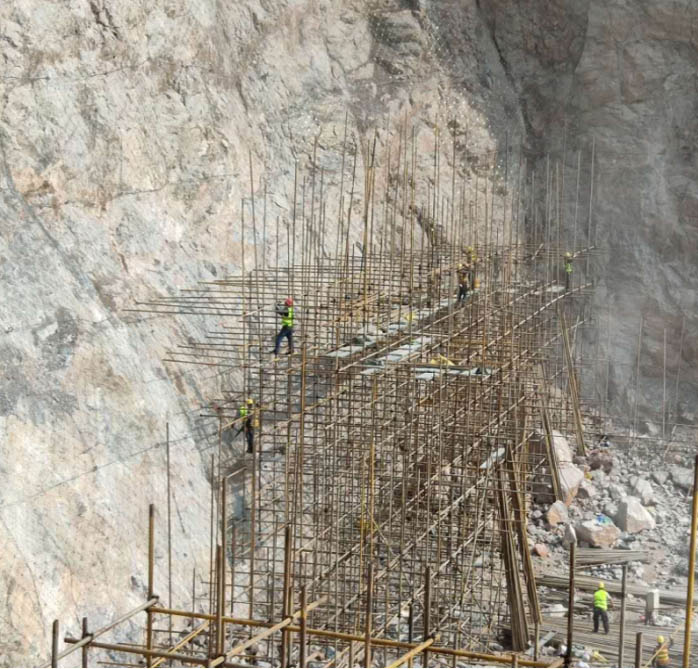 為了確保施工過程安全,假山施工團隊在假山施工時增加錨桿的密度和深度,這樣增加了整體的支撐點,大大增加整體安全系數(shù),保證安全施工。