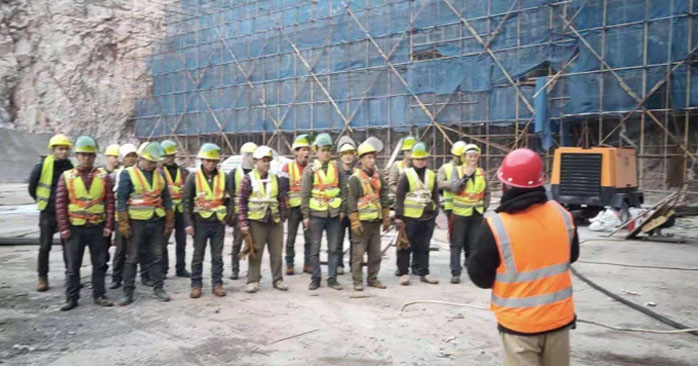 整個假山瀑布腳手架搭建過程約占總工程的1/3,這也足以體現(xiàn)出施工難度之高。其次,約高達百米的巨坑也為施工提高了難度。物料的運輸難、施工區(qū)域小、極致的氣候變換等都使假山施工受到極大的制約。但這些都無法成為施人員的障礙。